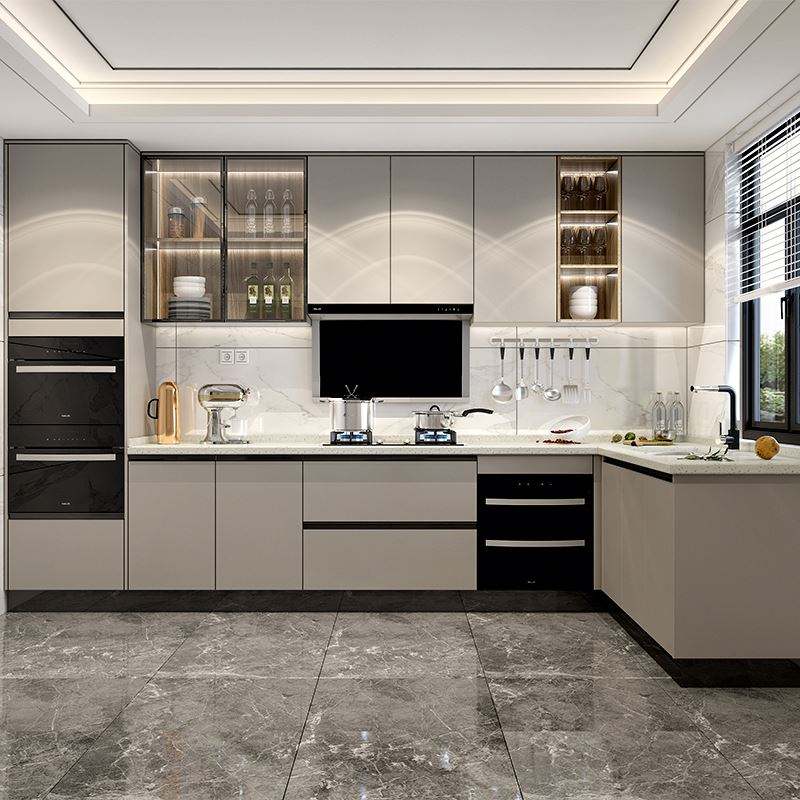 Custom Modular Modern Kitchen Cabinets Professional Plywood Carcase Glass Hinge Marble Laminate Countertop-Smart Storage