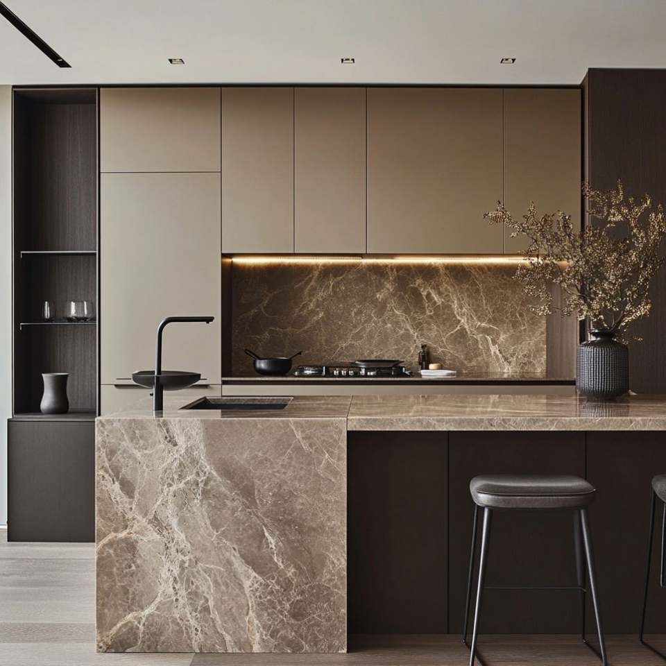 Aluminum frame with Glass & Rock slab