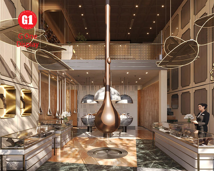 Custom Modern Marble Jewelry Display Counter LED Lighting Custom Luxury Jewelry Showcase Cabinet for Shop Decor Design