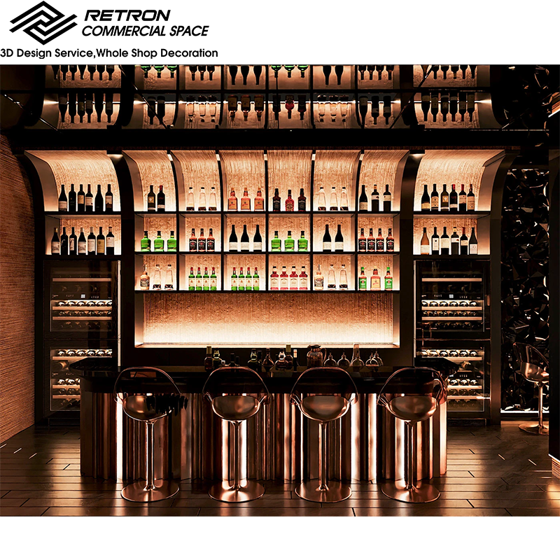 Custom Modern Nightclub Furniture With Led Marble Countertops Wooden Bar Wine Display Bar Counter