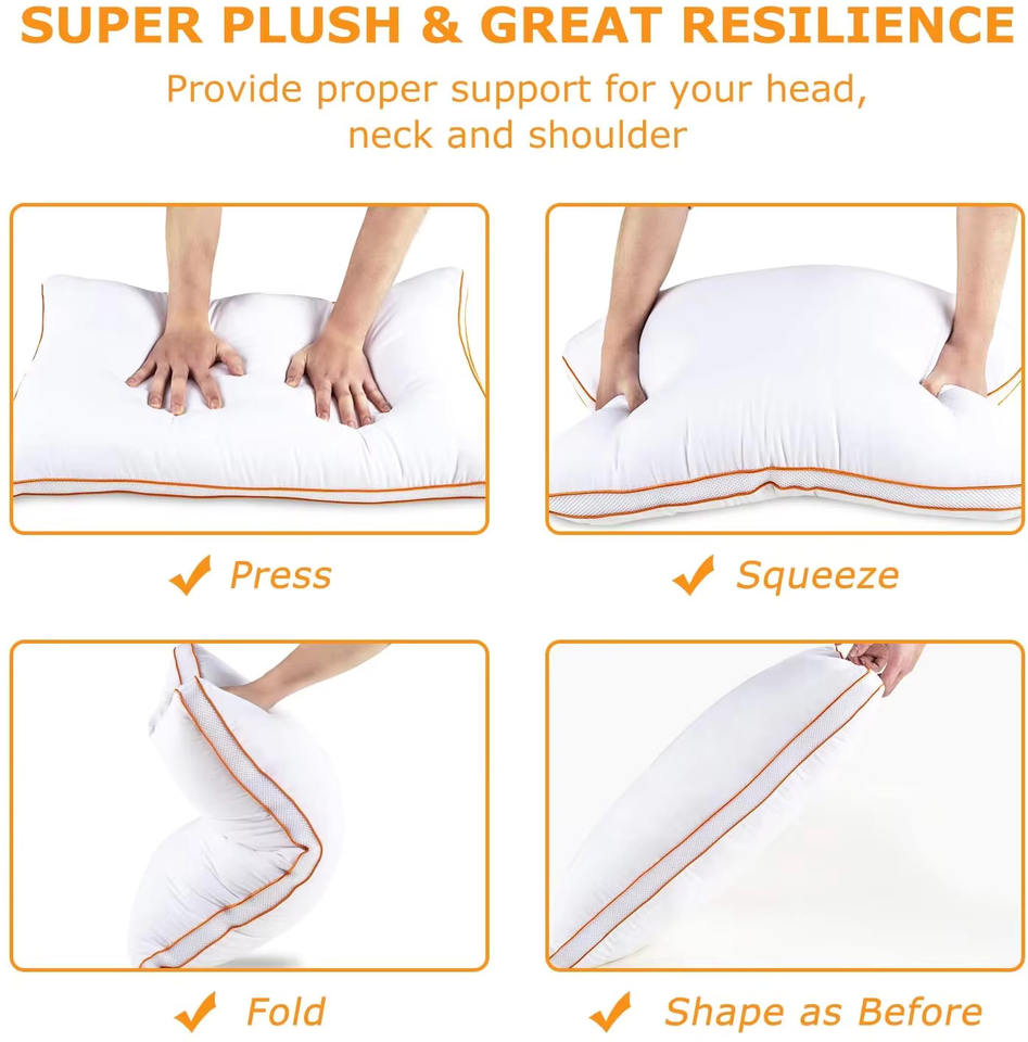 Custom Modern Queen Size Neck Support Solid Pattern Bed Pillows for Sleeping 2 Pack Microfiber Filling with Breathable Cover