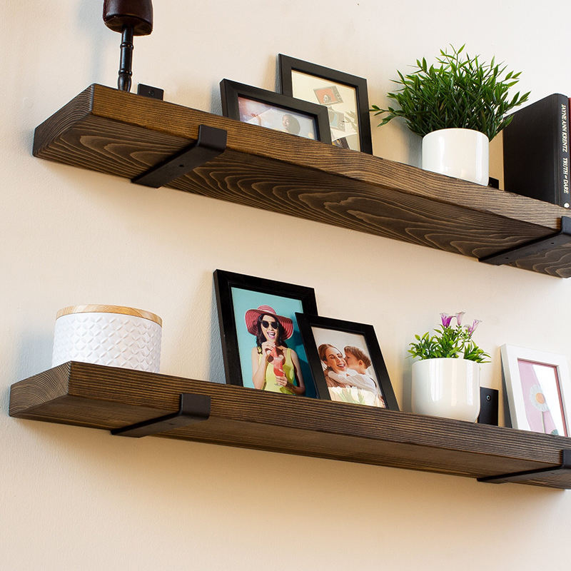 Custom Modern Rectangle Plated Live Edge Hardwood Shelves Bathroom Kitchen Rack with Bracket Long Book Floating Shelf