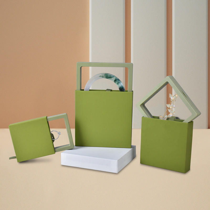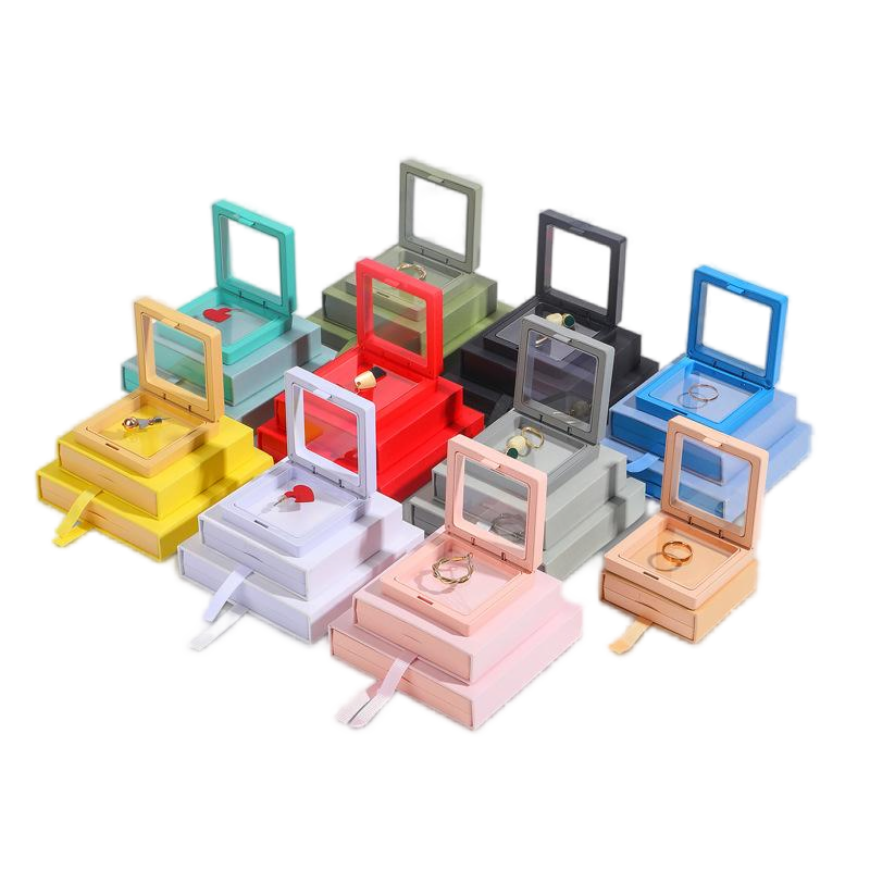 Custom Modern Square Transparent PE Film Pendant Display Jewelry Drawer Box with Drawstring Closure Yellow Hot Selling