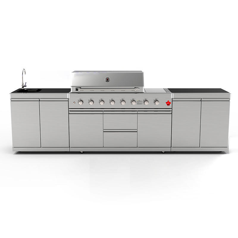 Custom Modern Stainless Steel Outdoor Kitchen BBQ Island Grill Set with Drawer Basket Hinge & Faucet