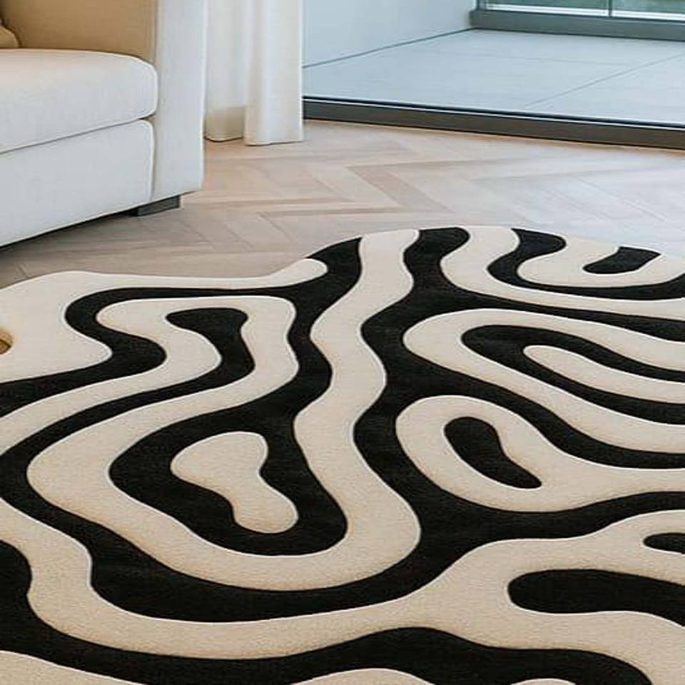 Custom Modern Wavy Abstract Hand-Tufted Wool Rug Black White for Living Room Area MOQ 1 Piece Elegant Abstract Carpet for Home