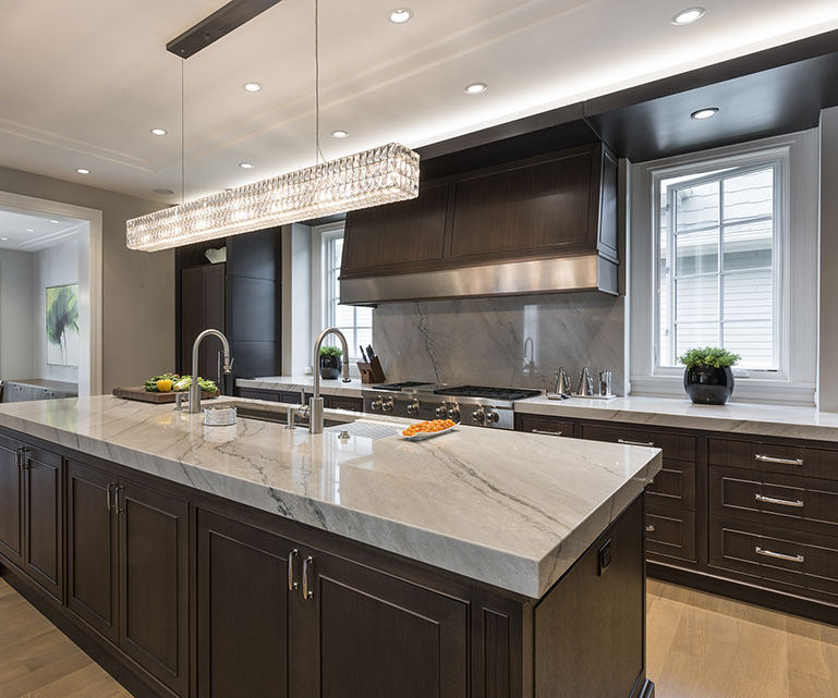 Custom Modular Luxury Kitchen Display Cabinets with Island Light Cabinet for Villa