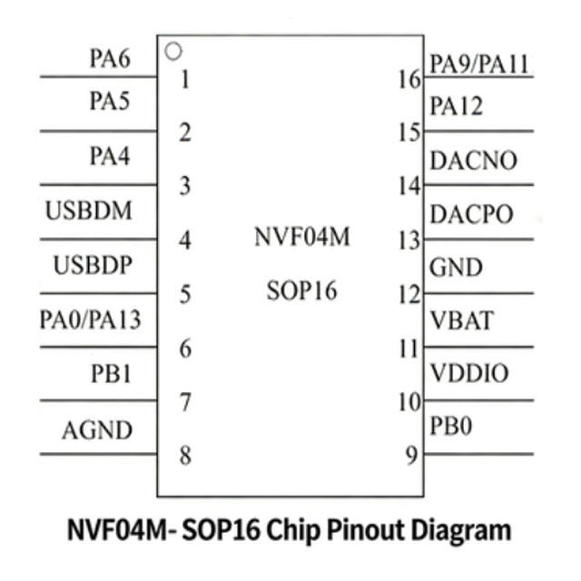 Interface:UART (RX/TX), USB (DM/DP), MIC input, DAC audio output