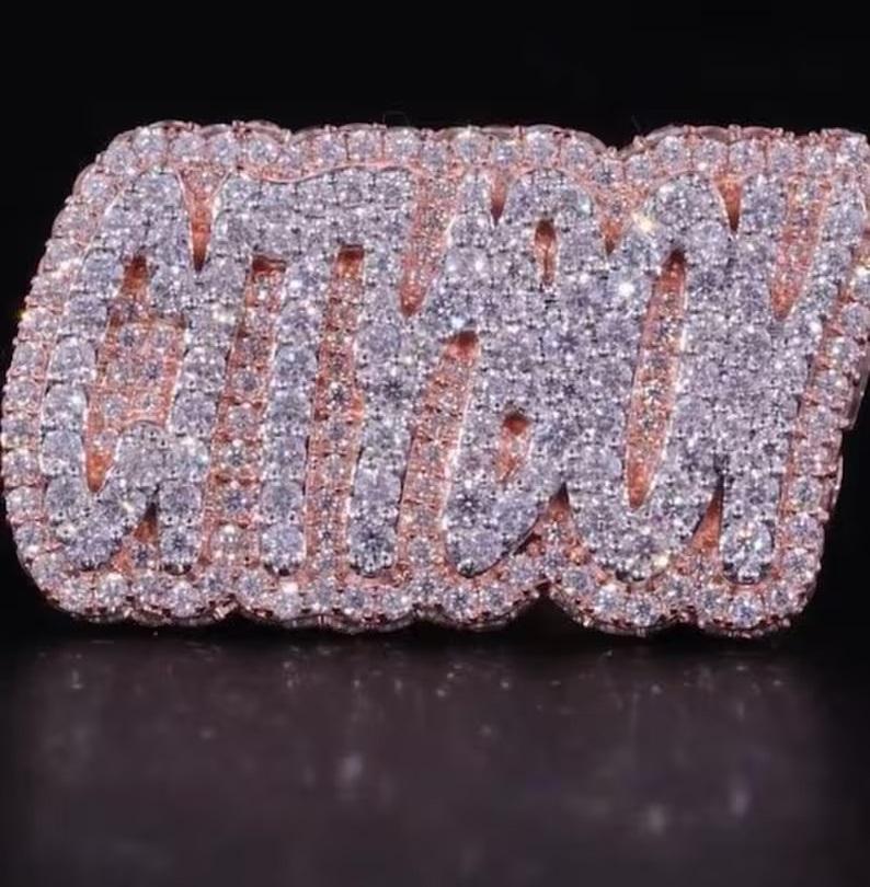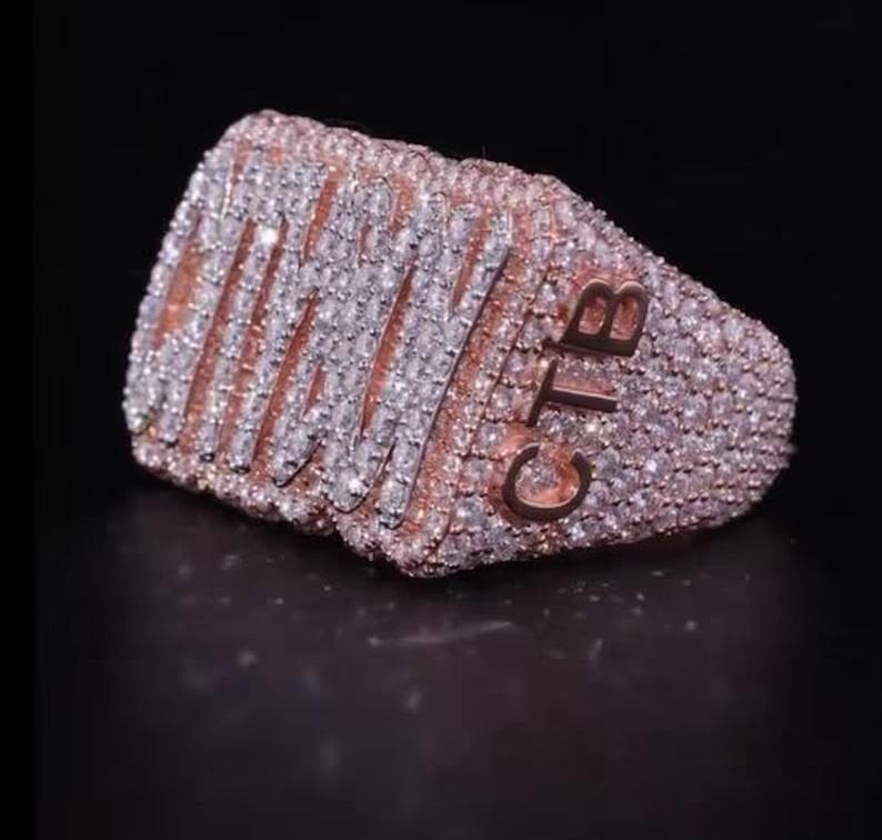 Custom Moissanite Diamond Ring for Men Unique Rose Gold Hip Hop Letter Jewelry Luxury Fashion Statement Jewelry