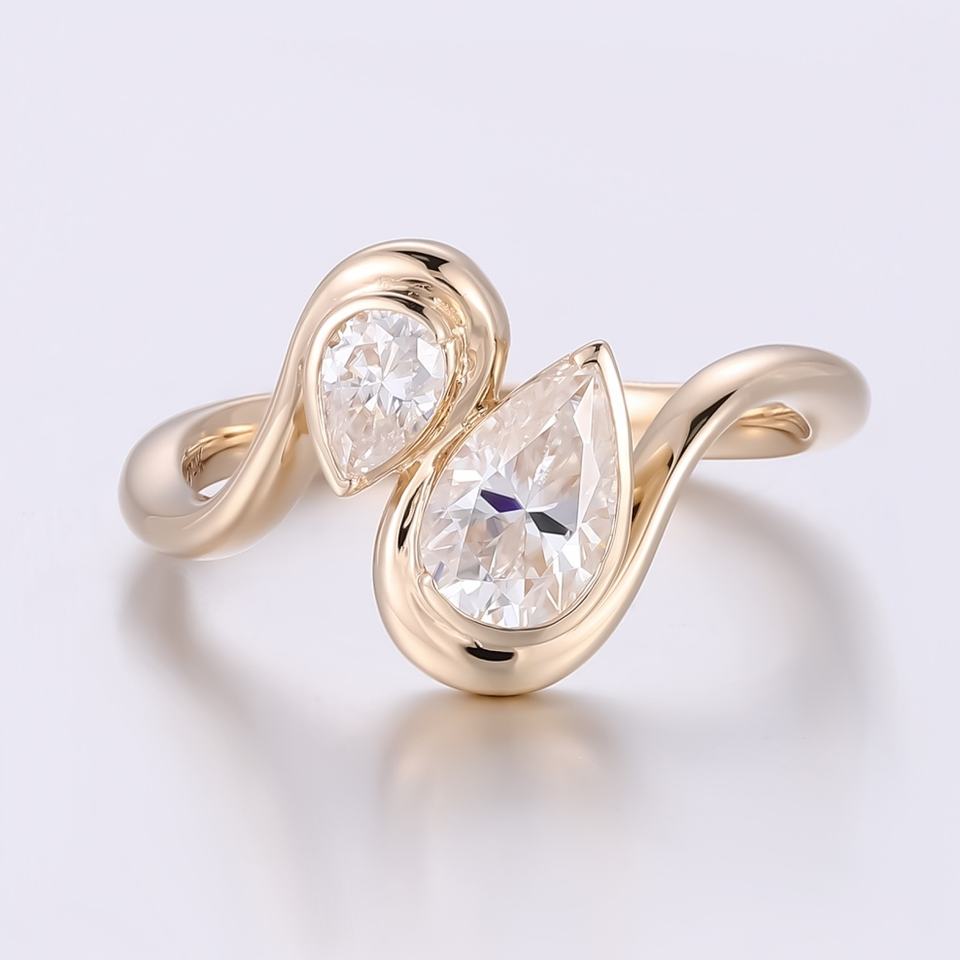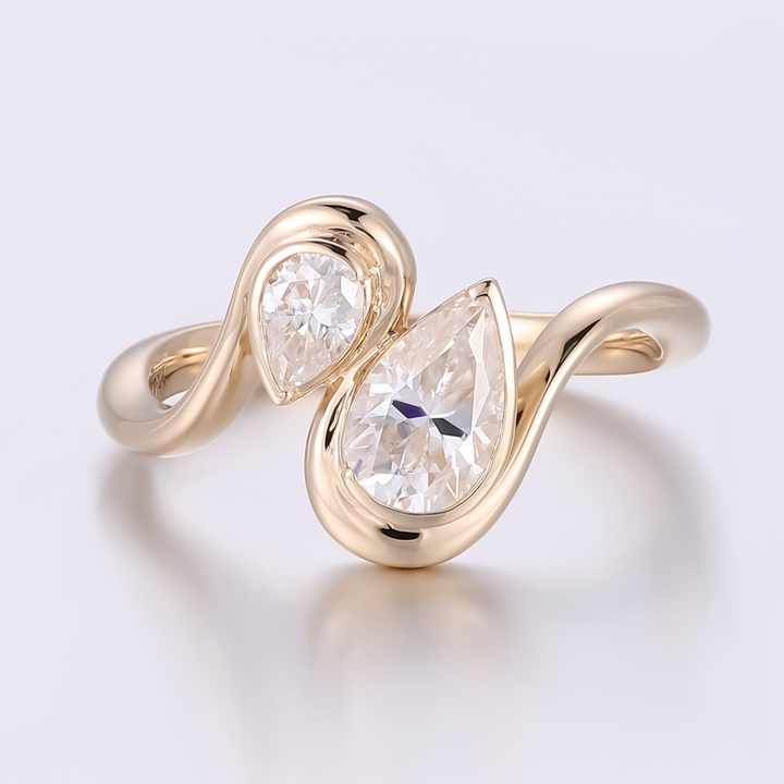 Custom Moissanite Jewelry 14K Solid Gold Toi Et Moi Ring Couple Ring 2 Stone Pear Cut Moissanite Wedding Ring
