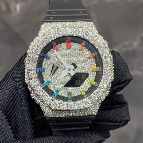 Custom Moissanite for Diamond Watch Iced Out Diamond Luxury Analog Leather Band Hip Hop Buss Down Watch Gift for Him