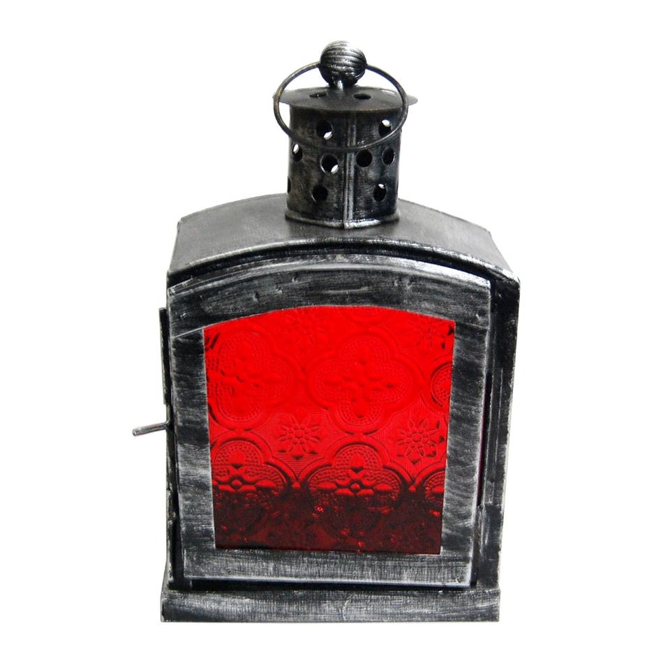Custom Moroccan Metal Candle Lantern Outdoor Home Decorative Iron Fitted Red Glass Personalized Logo Candle Lantern Home