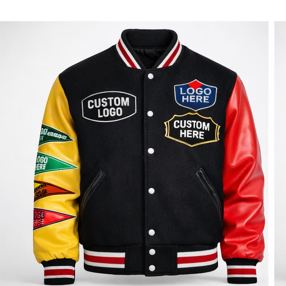 Custom Multicolor Winter Varsity Jacket Front OEM Letterman Personalized Embroidered Chenille Patch Baseball Eco-Friendly