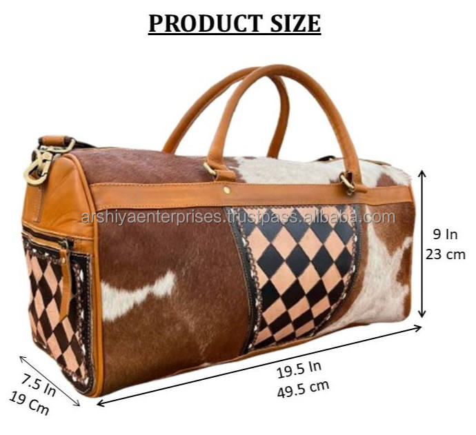 Product name:Tooled Hair-On Cowhide Checkered Pattern Duffel Bag