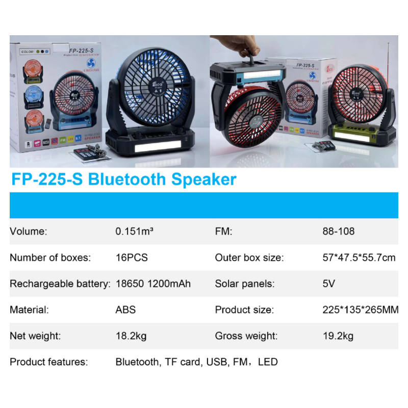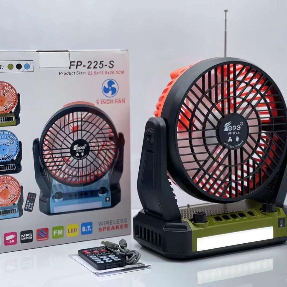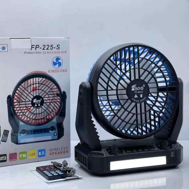 Custom Multifunction Rechargeable FM AM Radio 6 Inch Cooling Fan Outdoor Desktop LED Light High Bass Wireless Speaker