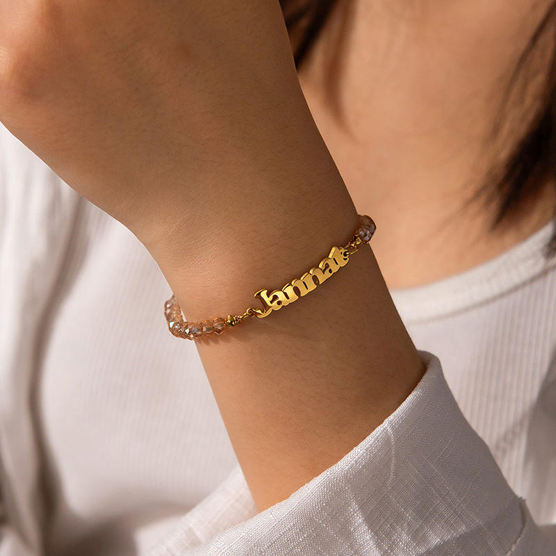 Custom Name Bar Bracelet Crystal Beads Stainless Steel Bracelet Personalized Gift for Women Men Uionen 1924