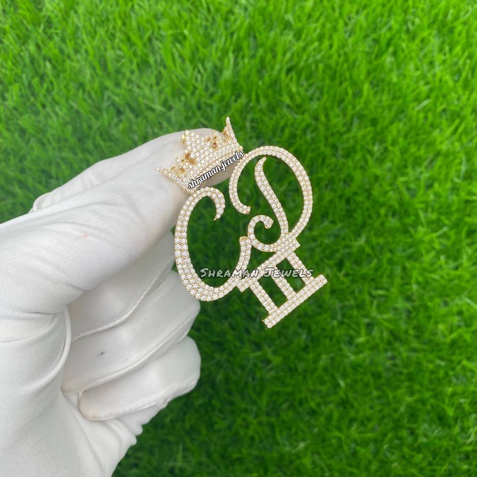Custom Name CD Logo Pendant White Gold Finish 925 Sterling Silver Crown Bail Fully Iced Diamond Hip Hop Jewelry Gifts for man