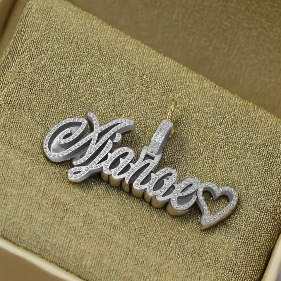 Trendy 10K Solid White Gold Love Heart Necklace with Natural Diamond Pendant Custom Nameplate and Personalized Letter Gifts Idea