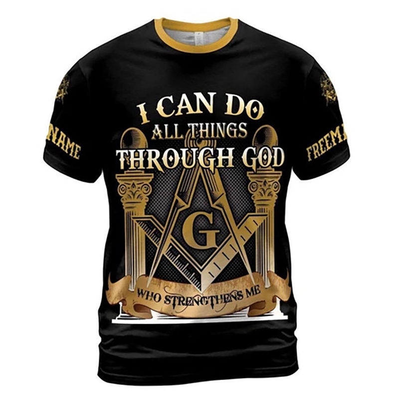 Custom Name Mason Freemason PHA I Can Do All Things Through God Men's T-Shirt High Quality Custom Made Short Sleeves Shirts