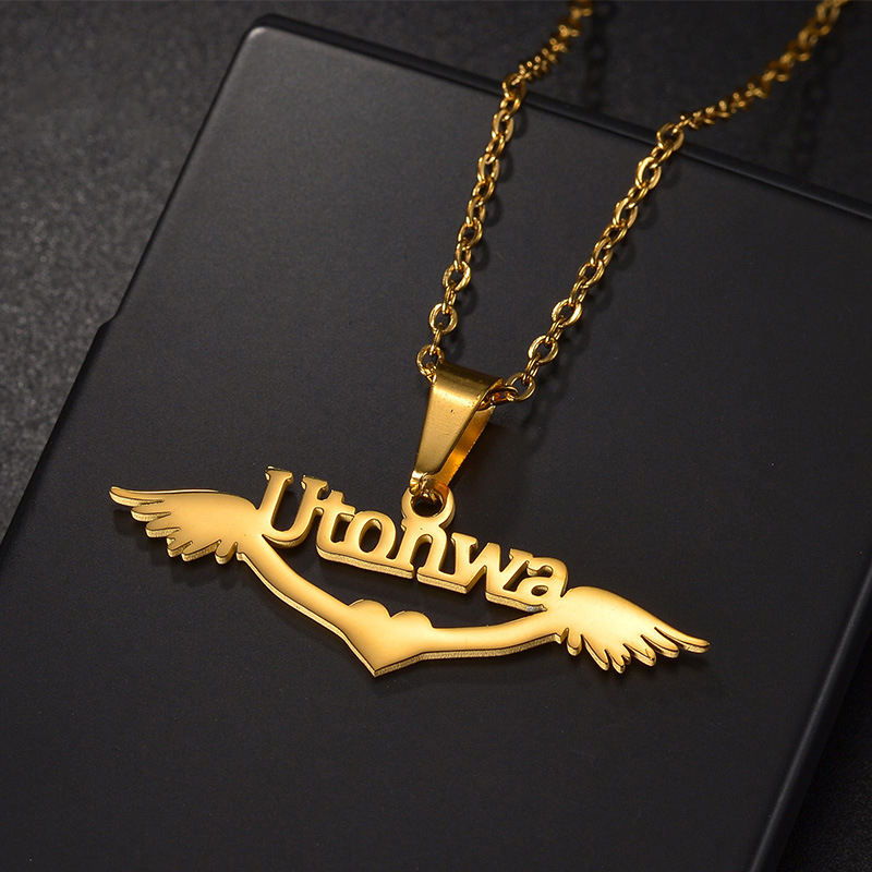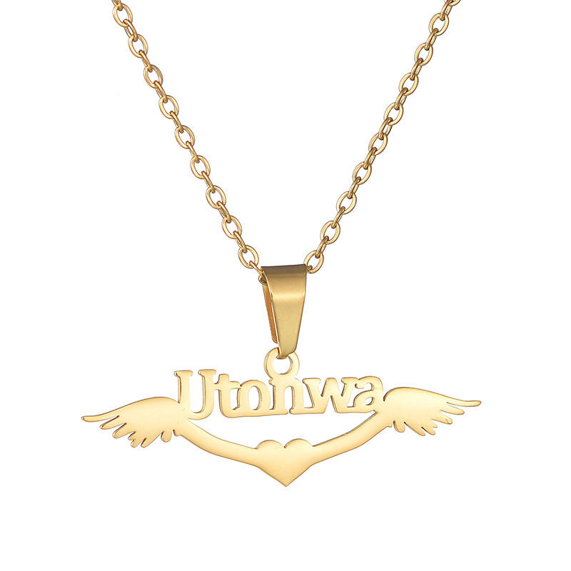 Custom Name Necklace Creative Wings Heart Pendant Stainless Steel Necklace Personalized Gift for Women Men Uionen 2004