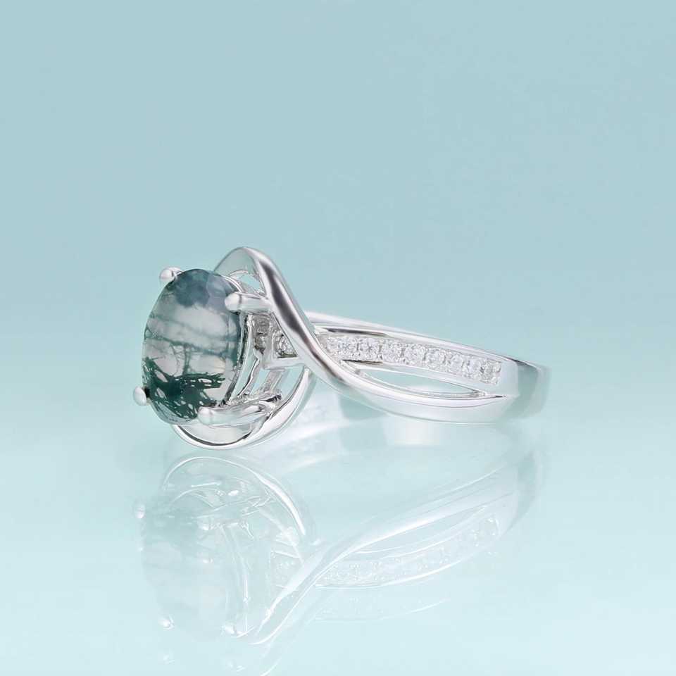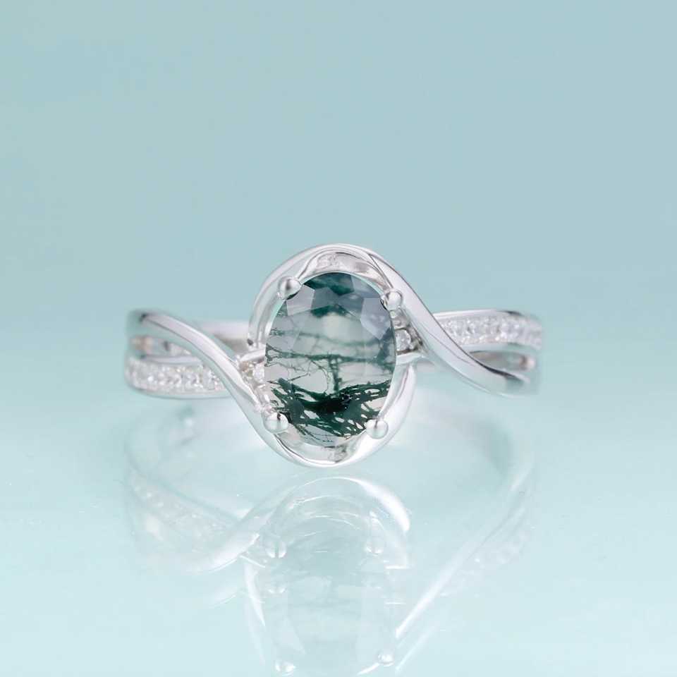 Custom Natural Moss Agate Healing Ring Oval Brilliant Cut Moss agate With Diamond Ring 14K White Gold Engagement Ring For Her
