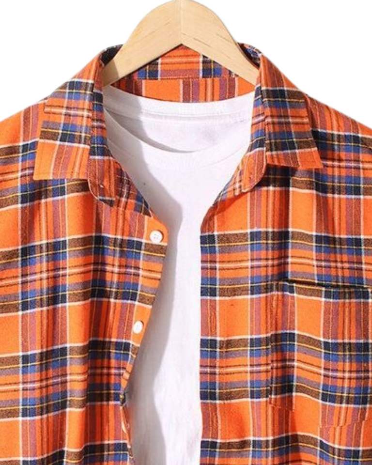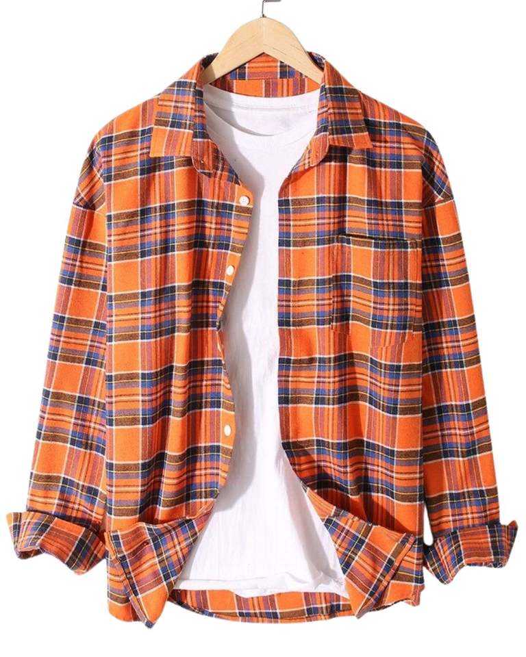 Custom Navy BluePlaid Men Flannel Shirt Long SleeveButton Down Casual Cotton Checkered Shirt Autumn Winter Daily Wear FashionTop