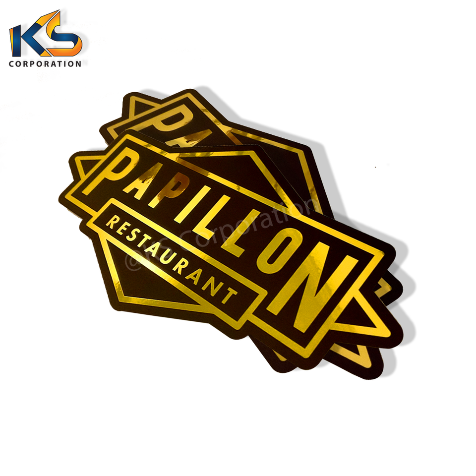 Custom New Design Professional Custom Made Logo Golden Chrome Metallic Golden Foil Eco-Friendly Waterproof UV Printed Self