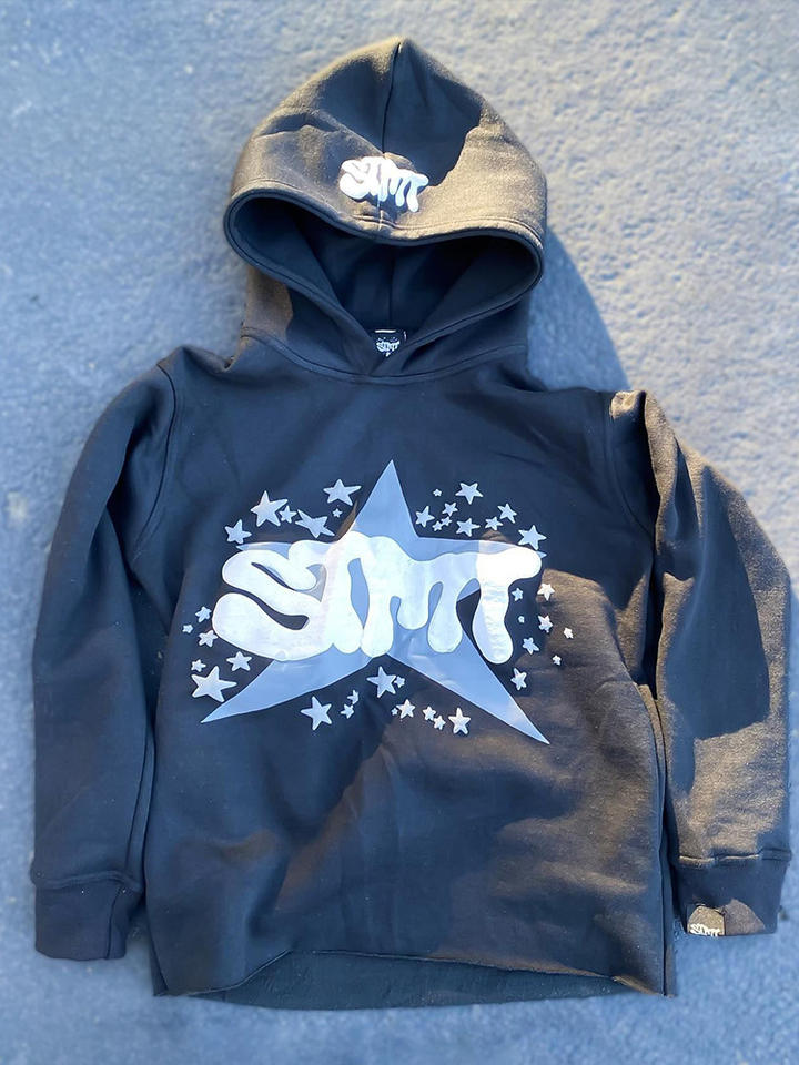 Custom New Puff Print Hoodie Unisex Pullover Black Top Fashion Drop Shoulder Streetwear Comfortable DIY Logo Sweatshirt