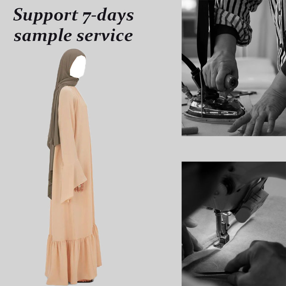Custom Nida Closed Abaya with Ruffle Hem and Wide Sleeves Islamic Clothing for Women Muslim Dress Manufacturer Eid Modest Abaya