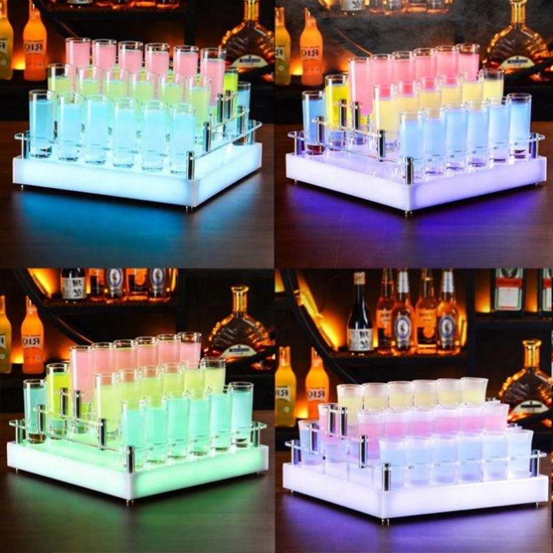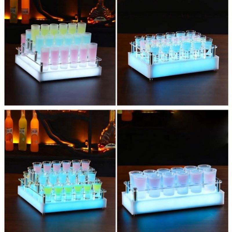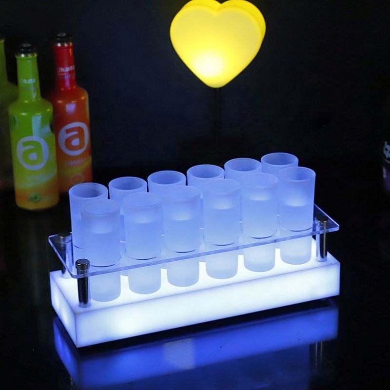 Custom Nightclub Party Novelties Acrylic LED Glass Cup Holder Display Barware Serving Shot Tray