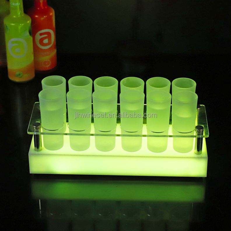 Custom Nightclub Party Novelties Acrylic LED Shot Glass Cup Holder Display Barware Serving Tray