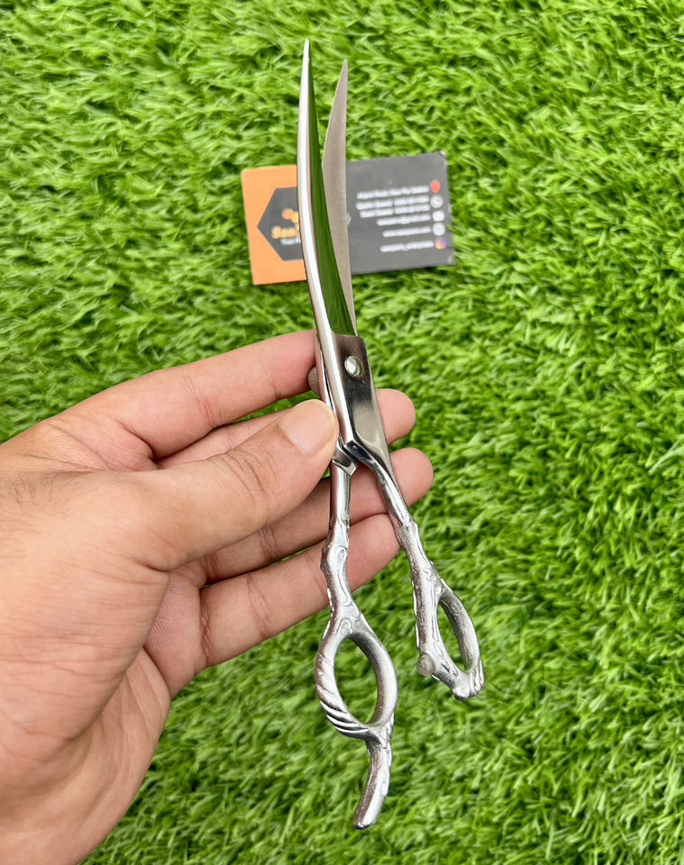 Custom Non-Slip Silicone Barber Hairdressing Curved Scissors with Sharp Blade Tips and Finger Rings Grips Haircut Accessories