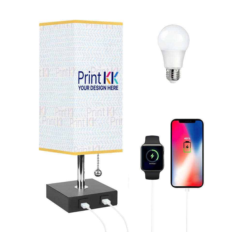 Custom Nordic European Style Modern Portable Table Lamp Gold Trim Square ABS Body Dome Shade USB Port Touch Dimming LED Lighting