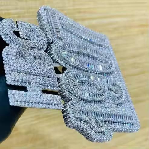 Custom Number Date Baguette Moissanite Hip Hop Custom Bail Pendant Pendant Jewelry Pass Tester Gold Plated VVS Handmade