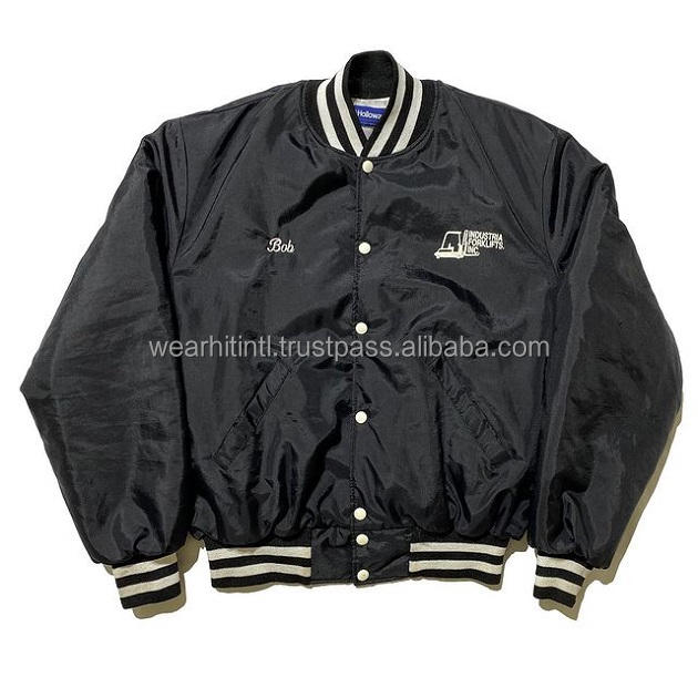 Custom Nylon Polyester Satin Bomber Jacket with Quilted Lining Multi Color Rib Windbreaker Baseball Style Starter Jacket Men