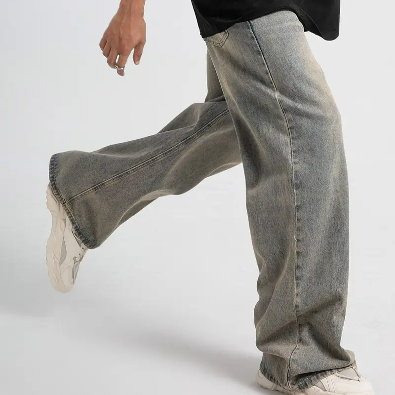 Custom OEM Baggy Denim Jeans Unisex High Waist Wide Leg Printed Casual Jeans for Men & Women Bangladesh Denim Pants Manufacturer