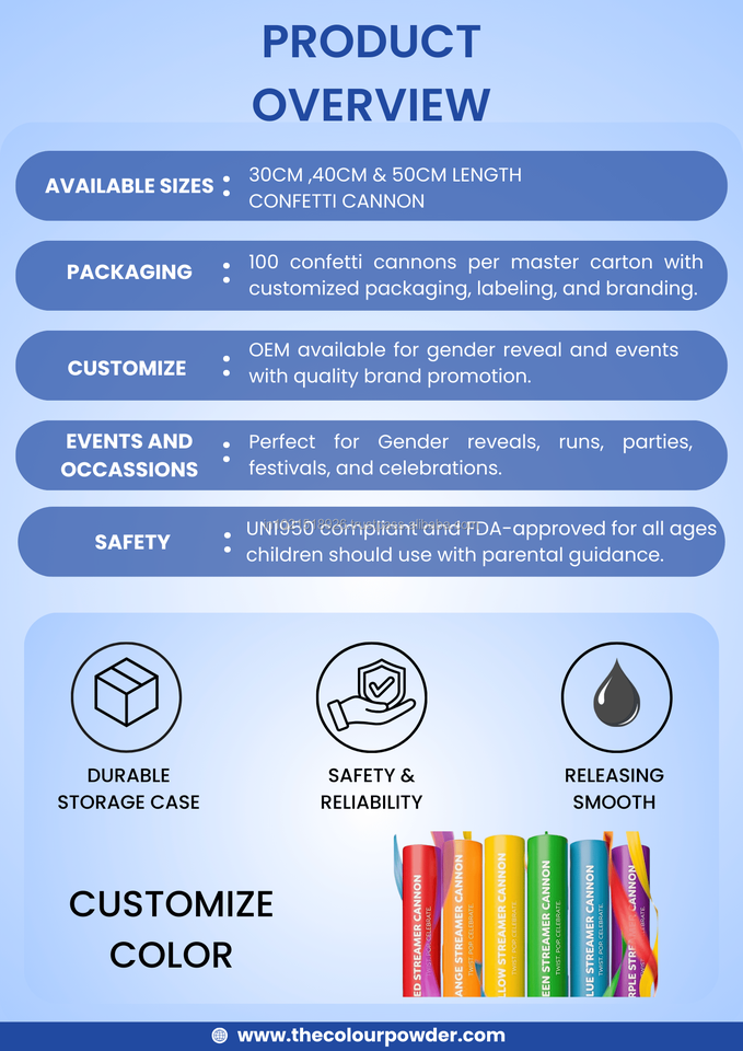 Custom OEM Biodegradable Confetti Cannon Popper | Air Powered Party Shooter for Birthday Gender Reveal Wedding Festival