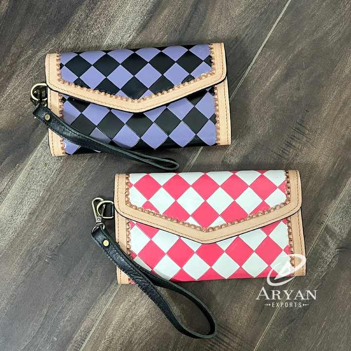 Product name:Hand Tooled Checkered Leather Wristlet Wallet