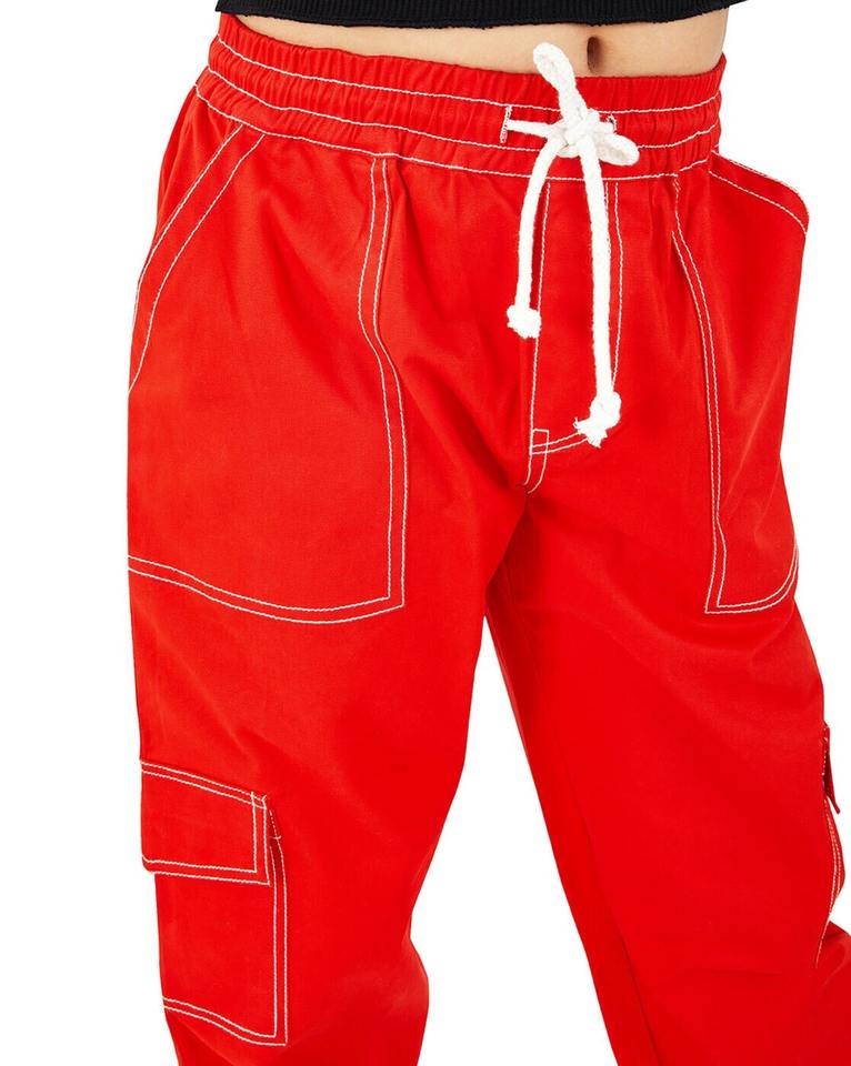 Custom OEM Manufacturer Best Quality Trousers for Women Street Loose Fit DST Greek letter Red white drawstring baggy cargo pant