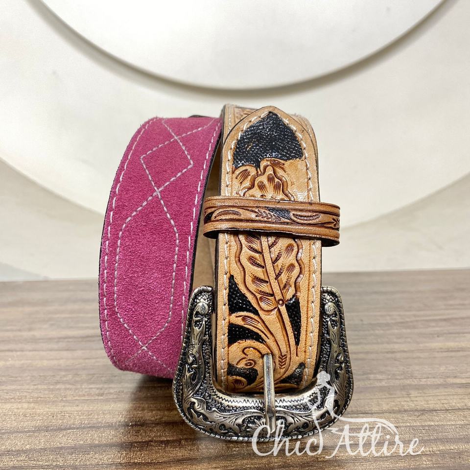 Product name:Boot Stitch Hand Tooled Suede Leather Belt
