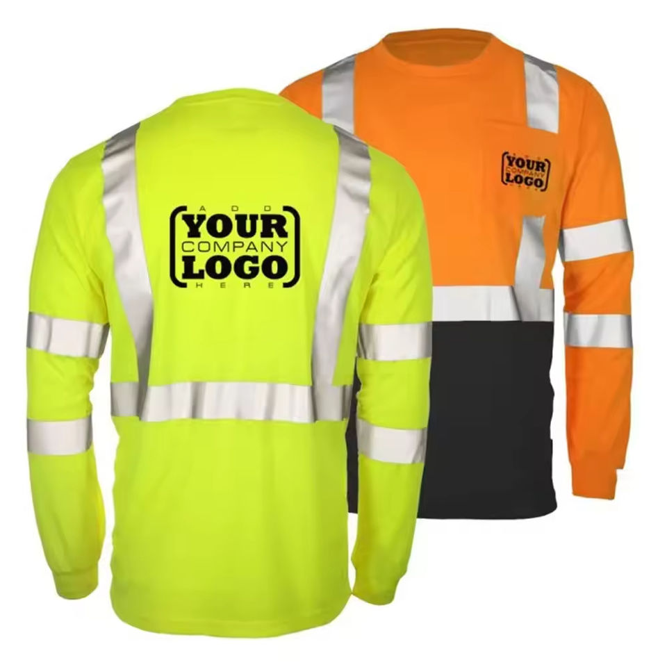 Custom OEM ODM Cheap 100% Polyester Safety T Shirts Long Sleeve Hi Vis Work Wear T-Shirts Reflective Shirts For Men