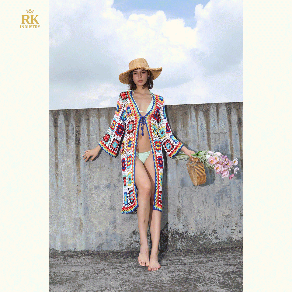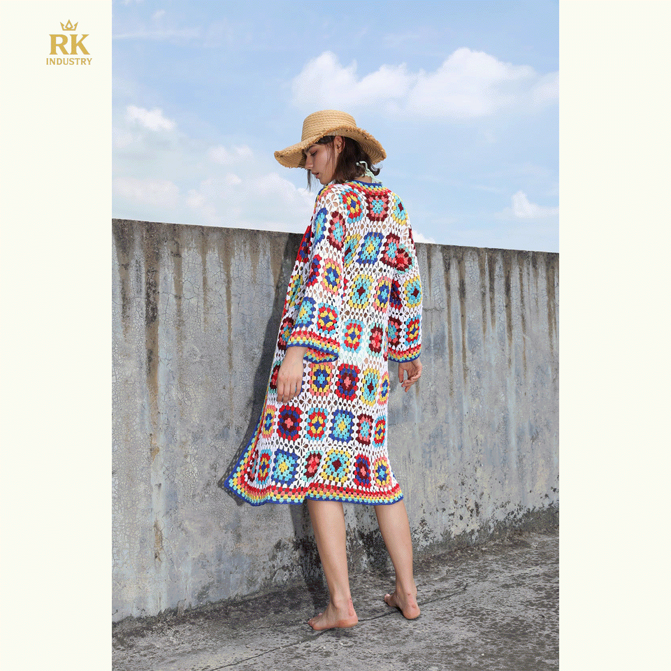Custom OEM & ODM Crocheted Women Sweater Hollow Out Hand Crocheted Knitwear Crocheting Women Knitted Dress