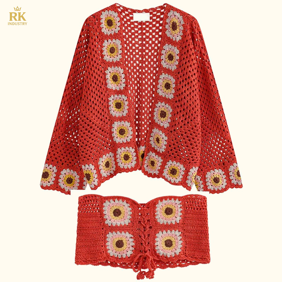 Custom OEM & ODM Crocheted Women Sweater Winter Hollow Out Hand Crocheted Knitwear Pullover Cardigan Sweater Women