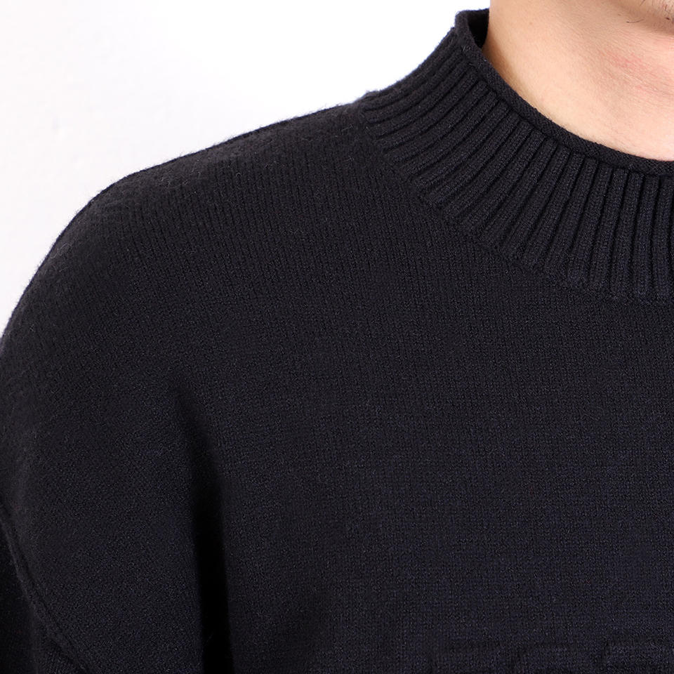 Custom OEM & ODM Sweater Male Letter Jacquard Crew Neck Pullover Black Jumpers Long Sleeve Knit Top Fashion Sweater Men