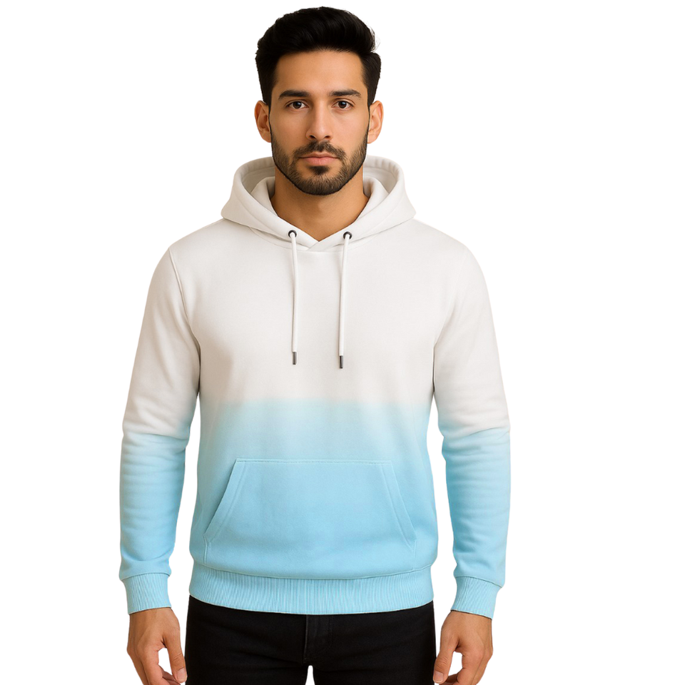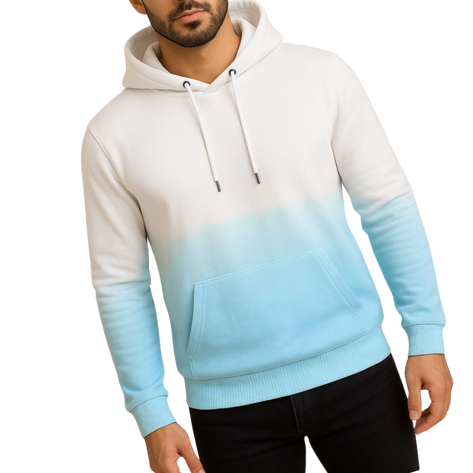 Custom OEM Ombre Hoodie Men Women Gradient Blue White Fleece Sweatshirt Private Label Unisex Streetwear Factory Wholesale Prices