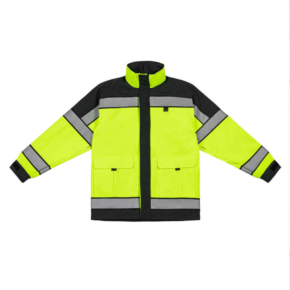 Adjustable Men Safety Jacket High Visibility Reflective Strips Multi Pocket Workwear for Construction and Industrial Tasks