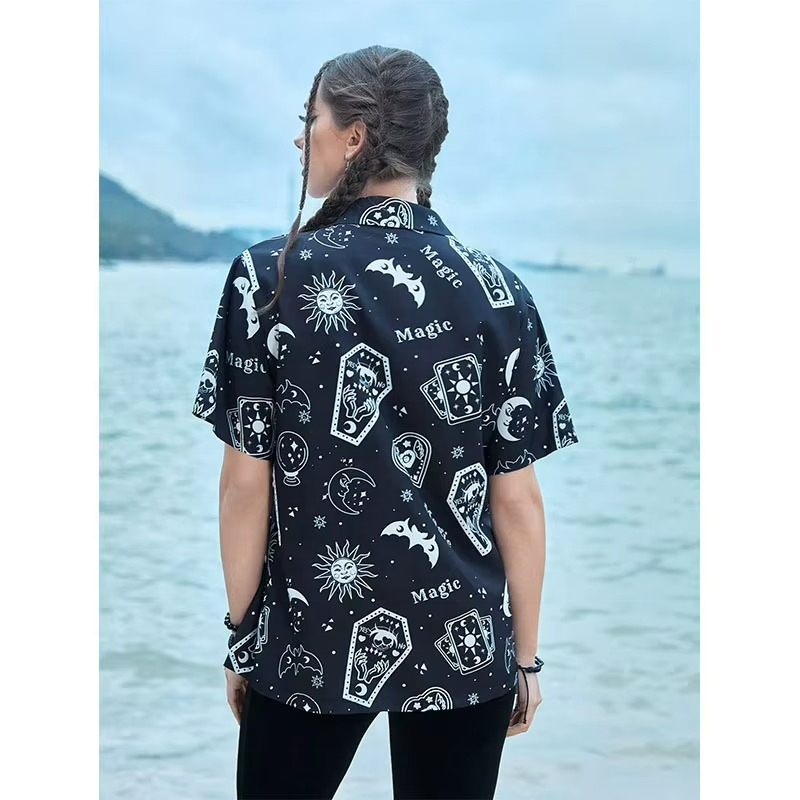 Custom OEM Summer Breathable Women Short Sleeve Allover Floral Print Hawaiian Shirts for Women