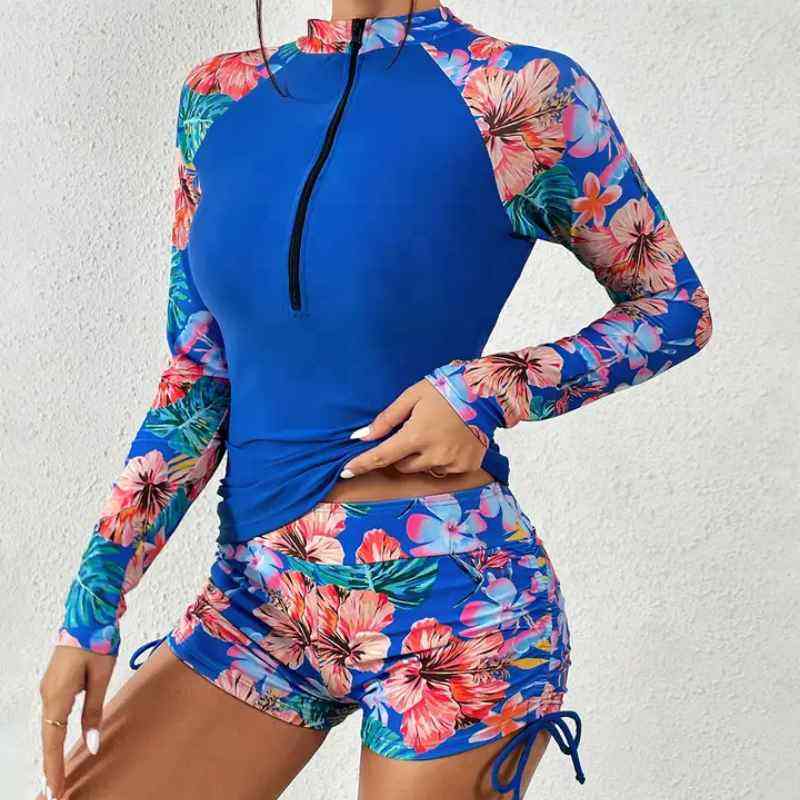 Custom OEM Women Rashguard Swimwear Floral Print Sports Beachwear
