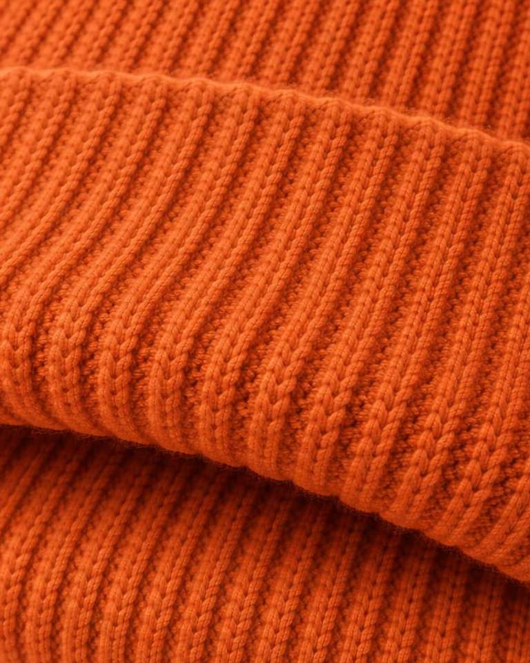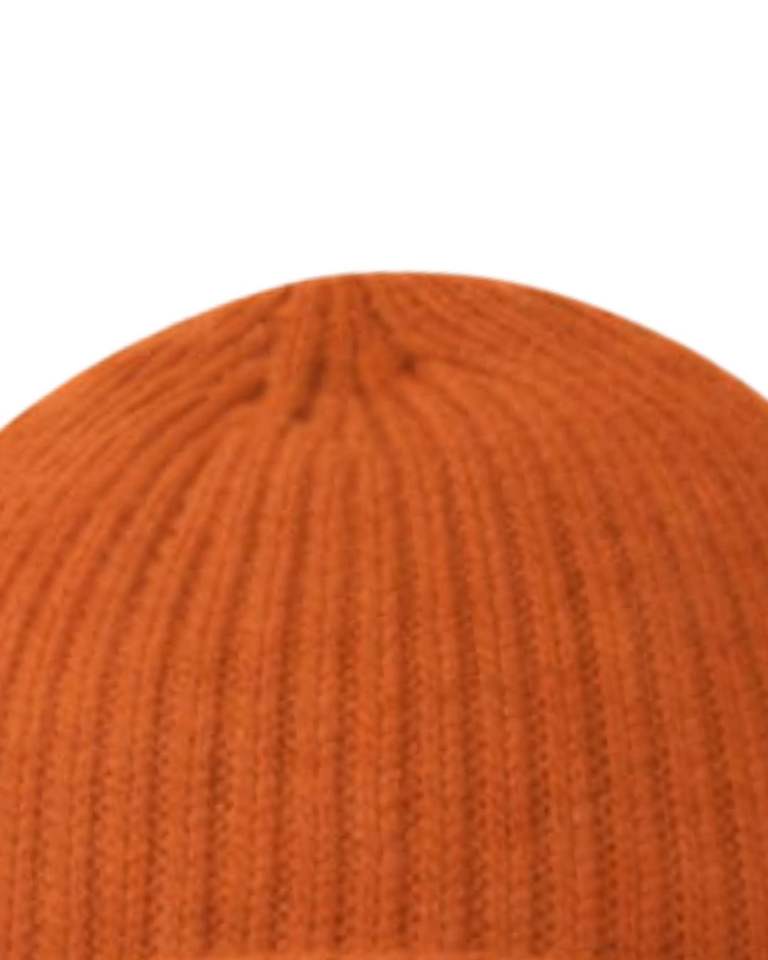 Custom Orange Ribbed Knit Beanie Hat With White Embroidered MR Logo Winter Warm Soft Acrylic Custom Manufacturer OEM Unisex Cap