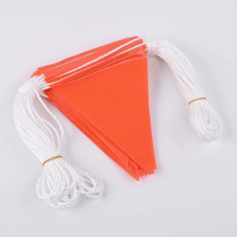 Custom Orange Triangular Banner Heavy Duty Rope Safety Bunting Flags Anti-Wrinkle Polyester/Vinyl