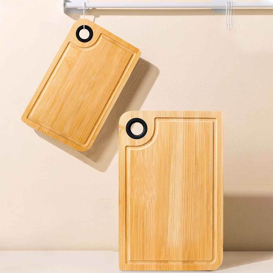 Custom Modern Organic Bamboo Wooden Cutting Board Rectangular Chopping Board Hole Juice Groove Dishwasher Safe Serving Blocks